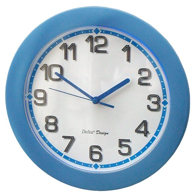 Zegar wykonany jest z plastiku. Ramka wykonana jest w kolorze niebieskim.