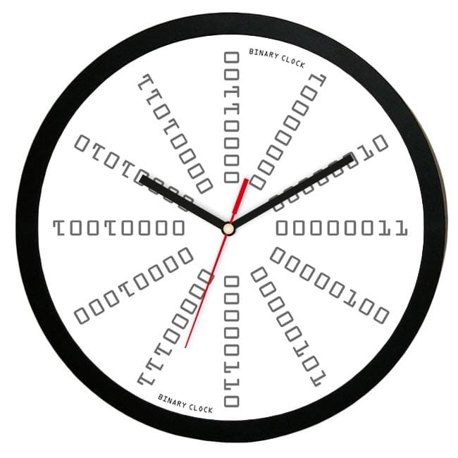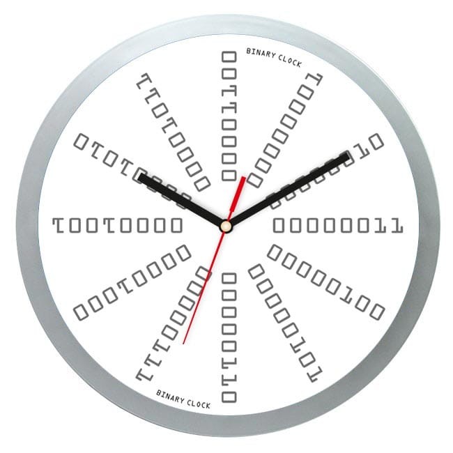 Polecamy zegar ze specjalną tarczą, gdzie godziny zapisane są w systemie binarnym.