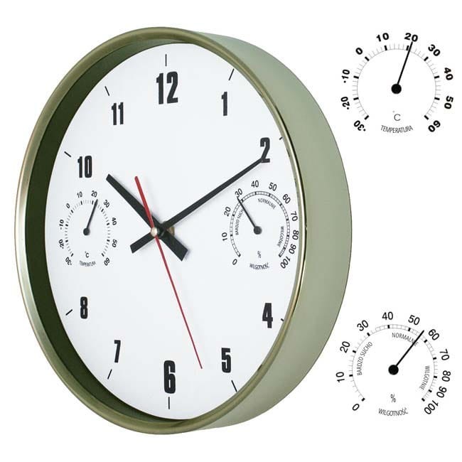 i wilgotnościomierz. Umieszczono wskaźniki na tarczy zegara.