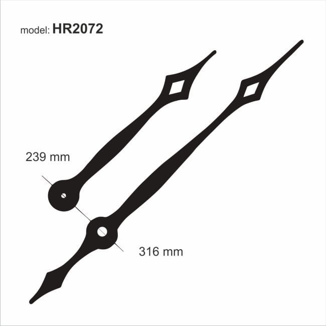 Wymiary wskazówek: minutowa 316 mm, godzinowa 239 mm